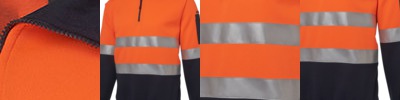80% Polyester for durability, and 20% Cotton for comfort,280gsm fleece fabric,Complies with Standards AS/NZS 1906.4:2010 AS/NZS 4602.1:2011 Day and Night,Front contrast panel,Half-zip collar, Rib basque and cuffs with elastane,Pen pocket at sleeve,Easy care fabric