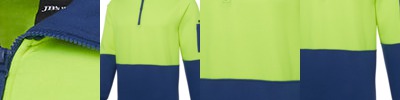 80% Polyester for durability, and 20% Cotton for comfort,280gsm fleece fabric,Complies with Standards AS/NZS 1906.4:2010 AS/NZS 4602.1:2011 Day Only,Front contrast panel,Half-zip collar, Rib basque and cuffs with elastane,Pen pocket at sleeve,Easy care fabric