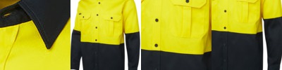 100% Cotton for 100% comfort,190gsm double pre-shrunk twill,Complies with Standard AS/NZS 4399:1996 for UPF Protection,Complies with Standards AS/NZS 1906.4:2010 AS/NZS 4602.1:2011 Day Only,Two-piece collar,Two front pockets with button-down flaps and pen insert,Curved hem with back tail styling,2 needle lap seamed for improved durability,All pressure points bar tacked for extra strength and durability